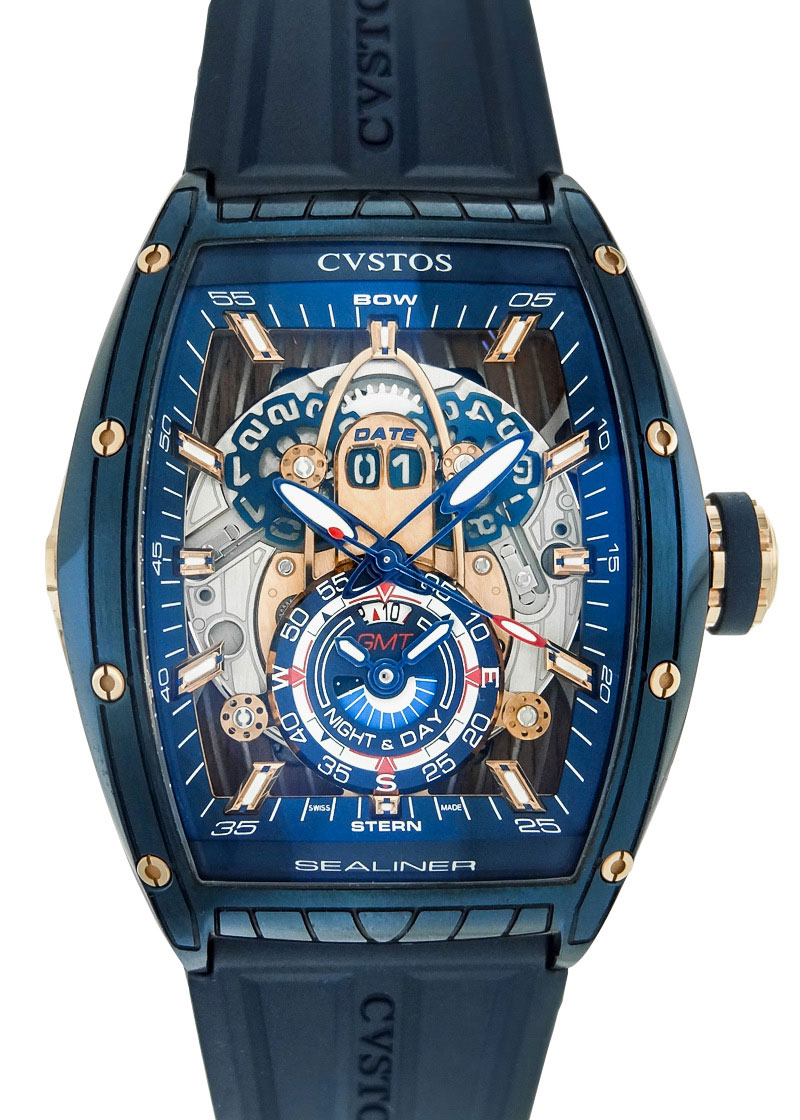 クストス - チャレンジ シーライナー | CVSTOS | GMT CVT-SEA-GMT-CP5N BLST | ブルーPVD/RG スケルトン文字盤 自動巻き ラバー | 中古 |