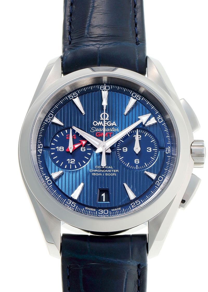 オメガ - アクアテラ コーアクシャル クロノメーター GMT クロノグラフ | OMEGA | 231.13.43.52.03.001 | SS ブルー文字盤 自動巻き レザー