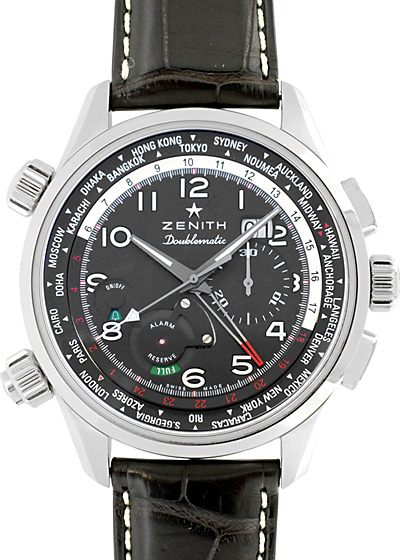 ゼニス - パイロット ダブルマティック ワールドタイム クロノグラフ アラーム | ZENITH | 03.2400.4046/21.C721 | SS 黒文字盤 自動巻き レザー | 未使用品 |