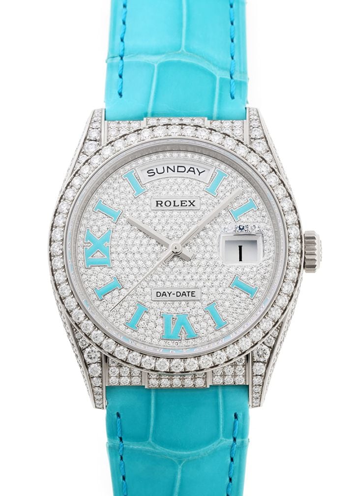 ロレックス - オイスター パーペチュアル デイデイト | ROLEX | 118206A | PT アイスブルー文字盤 自動巻き ブレスレット | 入荷予定 | 中古