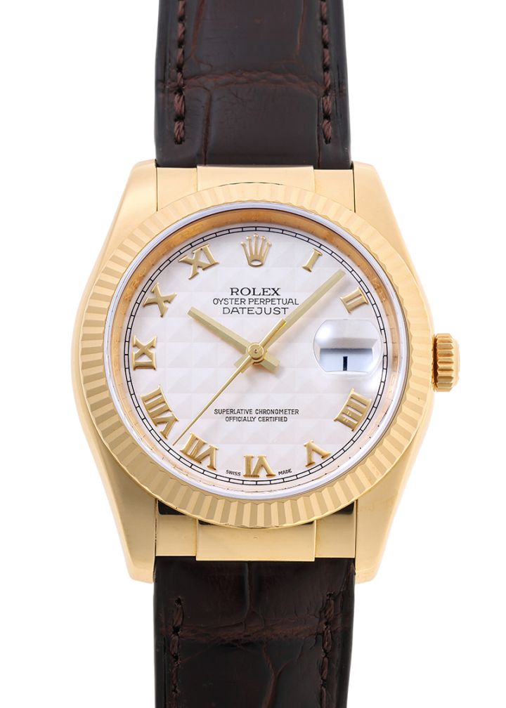 ロレックス - オイスター パーペチュアル デイトジャスト | ROLEX | 116138 | YG アイボリーピラミッド文字盤 自動巻き レザー | 中古