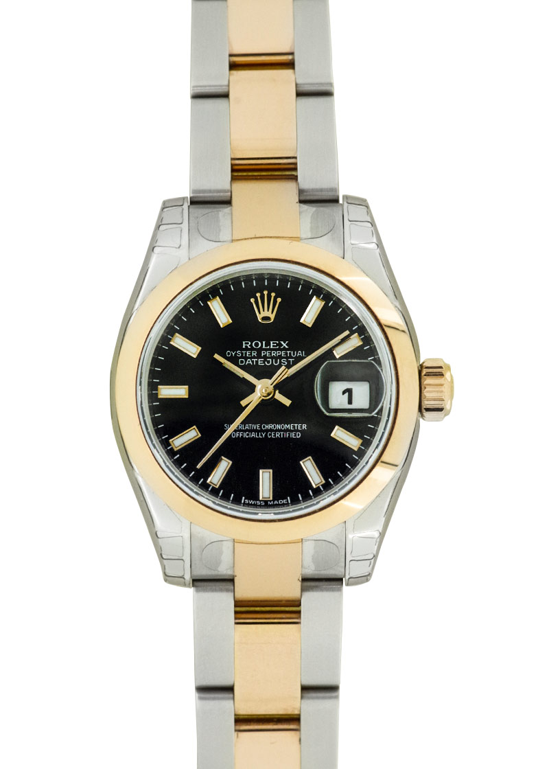 ロレックス - レディース オイスター パーペチュアル デイトジャスト | ROLEX | 179161 | PG&SS 黒文字盤 自動巻き ブレスレット