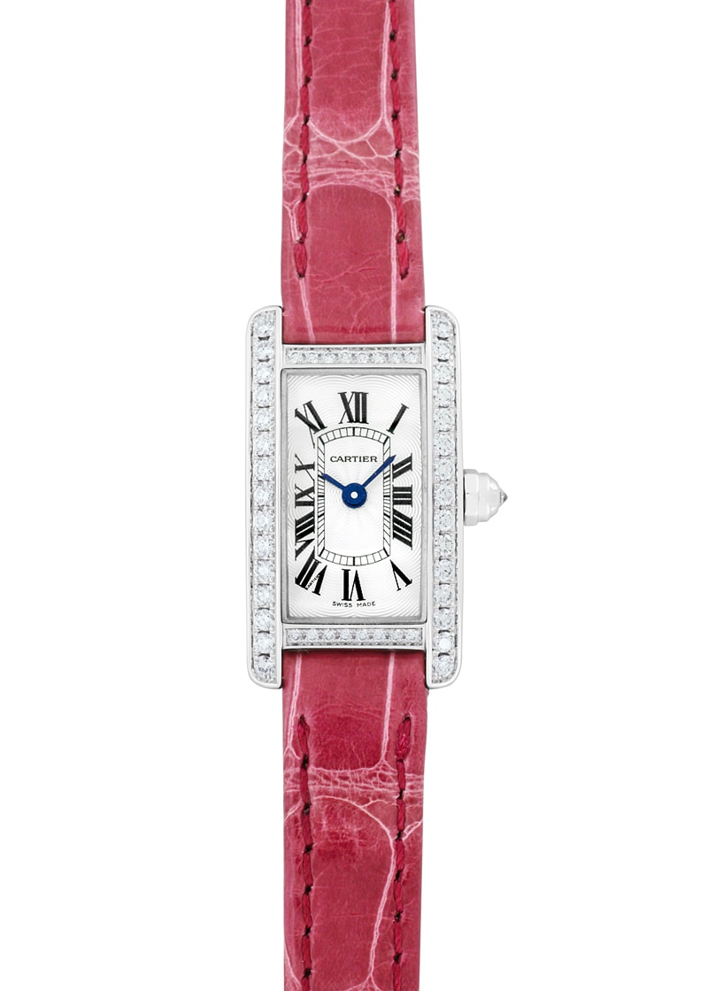 カルティエ - レディース タンクアメリカン ミニ ダイヤモンドベゼル | CARTIER | WB710015 | WG シルバー文字盤 クォーツ レザー