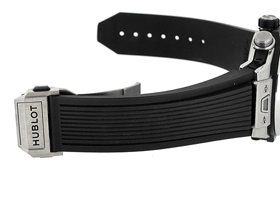 ケースの前面、背面の両側から見えるムーブメントは非常に繊細な印象ながら、ビッグバンの持つスポーティな雰囲気に加えて、ライン入りのラバーベルトによってウブロの魅力を存分に感じられるラグジュアリーなスポーツウォッチに仕上がっています。