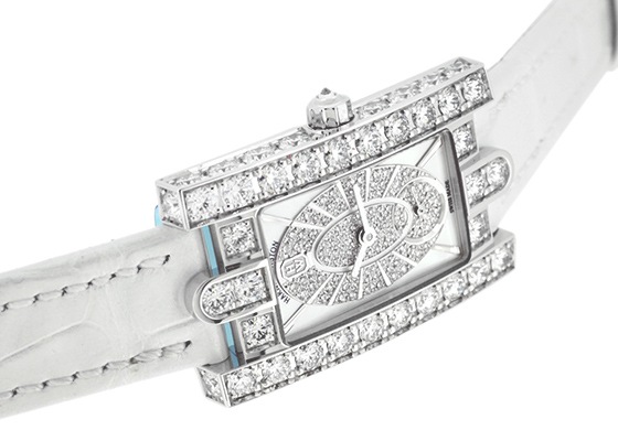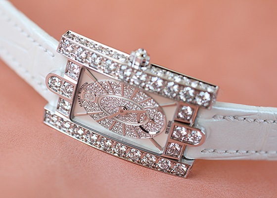 ケースと文字盤にハリーウィンストンが誇る最高級のダイヤモンドが惜しみなく使われた、身に付ける女性の手首に気品を与えてくれる逸品です。