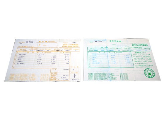 箱・保証書はございませんが、日本ロレックスの修理明細書が付属されます。