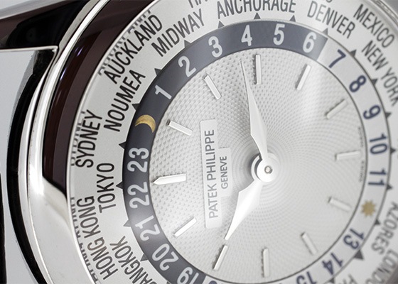 プッシュボタンで世界24都市の時間が即座にわかる、パテックフィリップの人気モデルです。