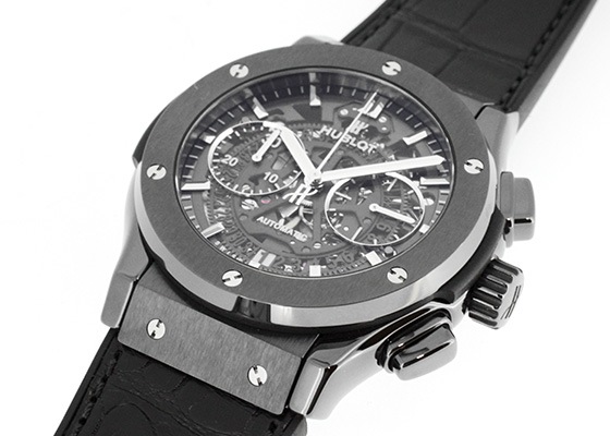 クラシック フュージョンのシンプルさとウブロらしいメカニカルで迫力あるデザインが一度に楽しめる、オススメの1本です。
