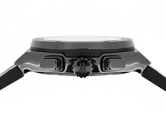 文字盤には透明度の高いサファイアガラスを採用し、スケルトン加工が施されたムーブメントをじっくりと堪能する事が出来ます。 セラミックケースの為、見た目よりも軽く装着感も良い一品です。こちらはケースやベゼルにブラックセラミックを使用、文字盤も黒色に統一したブラックマジックモデルです。