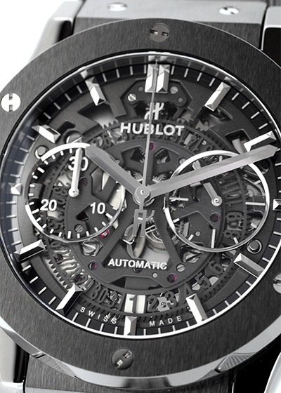 ウブロ - クラシックフュージョン ブラックシャイニー | HUBLOT | 542.NX.1270.LR | TI 黒文字盤 自動巻き ラバー | 中古