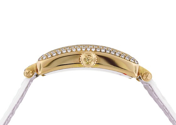 ケースを覆うダイヤモンドの輝きと、マザーオブパールとPGインデックスの艶やかさが、女性の華やかさと可憐さを表現しているようなモデルです。