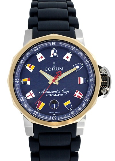 特徴的な12角形のベゼルに国際海洋信号旗が描かれた文字盤でアドミラルズカップはコルムを代表するシリーズとなりました。