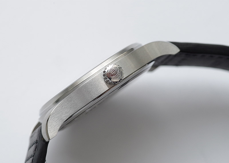 前回のモデルのマーク17に比べ、ケースサイズが41mmから1mm小さい40mmになり、カレンダー表示は3連表示から1日表示へと変わりました。バー表示だった6時と9時もアラビア数字へと変更されています。