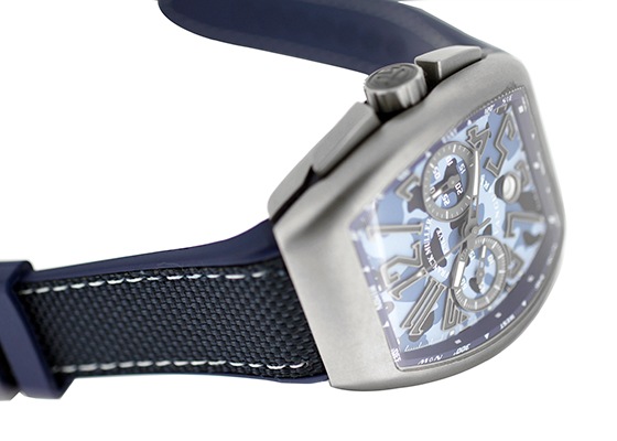 他ブランドのトノー型の時計とは一線を画す、フランクミュラーの代名詞とも言えるケースです。