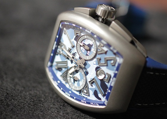 こちらのヴァンガードはブルーカモフラージュ柄のクロノグラフモデルです。