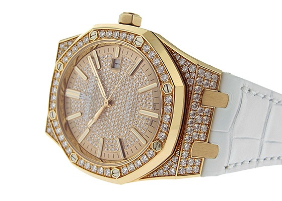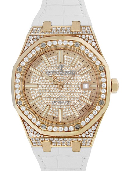 オーデマピゲが唱えるラグジュアリースポーツの極みとも云えるこちらのモデルは、文字盤に345石、ケースとバックルには166石、合計4,16ct(カラット)511石のダイヤモンドをあしらったラグジュアリーピース。