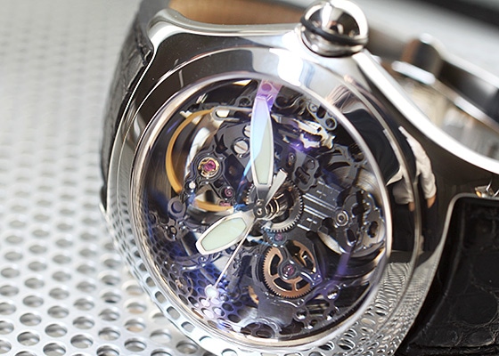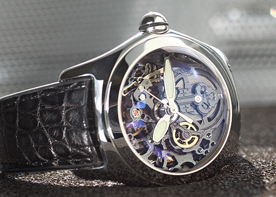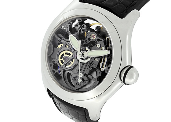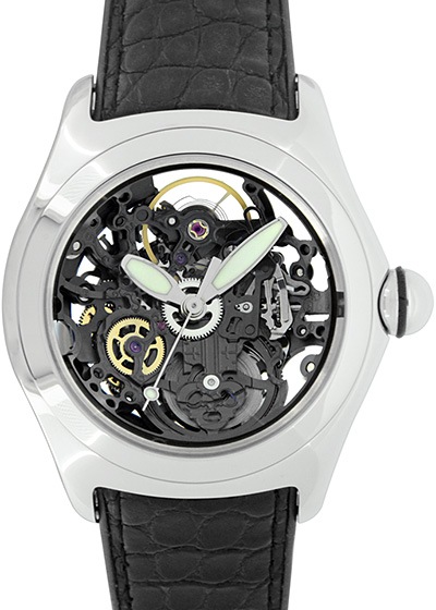 メンズサイズの自動巻モデルで、スケルトンの文字盤が特徴です。