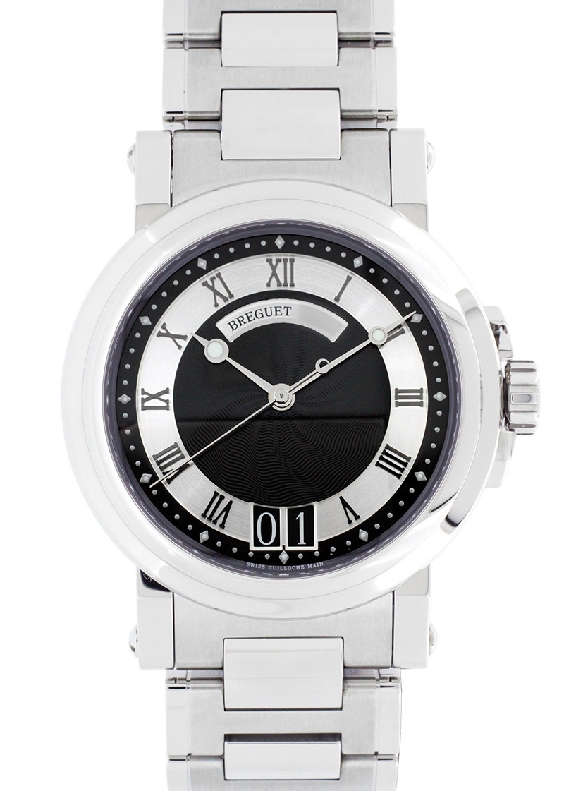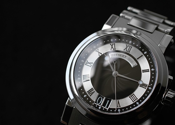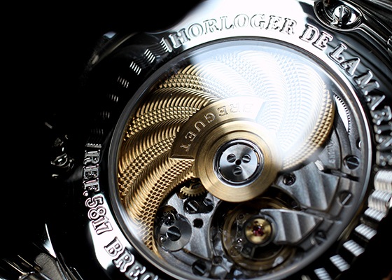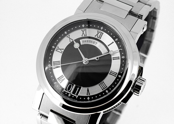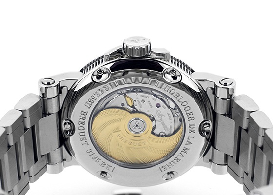 大海を思わせる文字盤のギョーシェ彫り、波型のリューズガードなど、海を連想させるスポーティーなデザインと、コインエッジケース・ブレゲ針を採用し、ブレゲらしさを存分に感じさせます。また、新型のブレスレットになったことで、更にケースとの一体感が増しています。