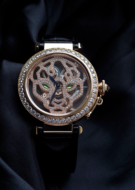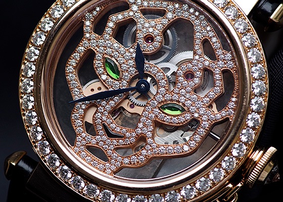 カルティエを象徴するパンテール(パンサー)をモチーフにスケルトン加工したブリッジそのもので制作された、カルティエのセンスと技術力を融合したまさにアートな逸品です。
