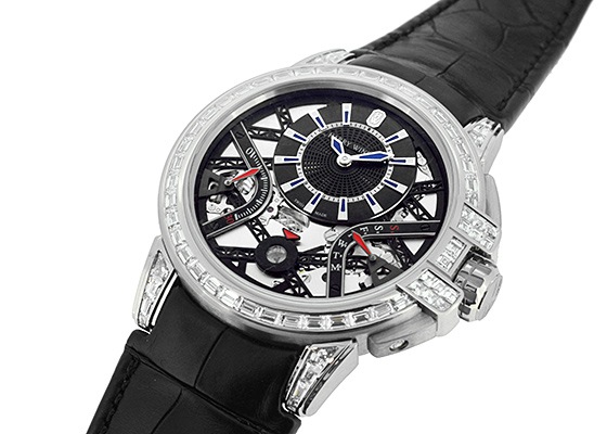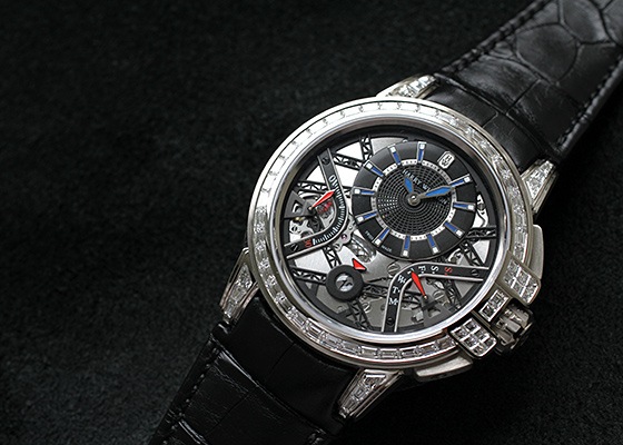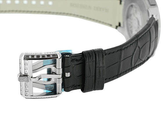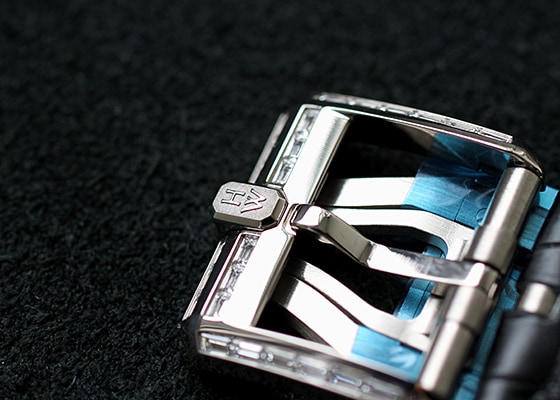 ホワイトゴールドのケースには91個ものバゲットを贅沢に使用したラグジュアリーウォッチです。