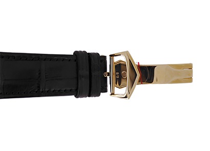 こちらは12時位置に曜日と月名表示窓が横に並んだ《ダブル・ギッシェ》を採用、6時位置にムーンフェイズとデイト表示を組み込んだアニュアルカレンダーです。