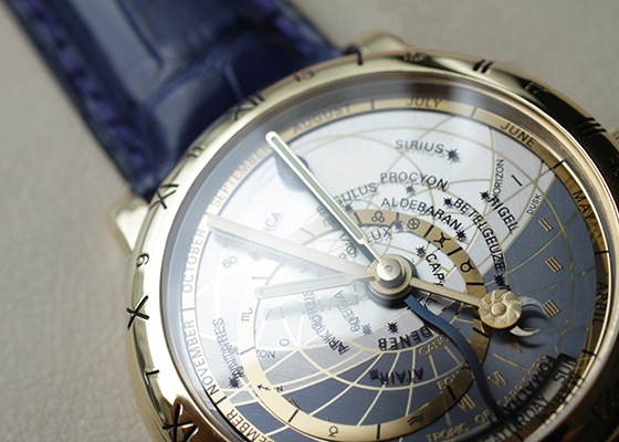 ユリスナルダンを代表する天体時計で、天文観測機能のメカニズムが搭載されている超複雑時計です。
