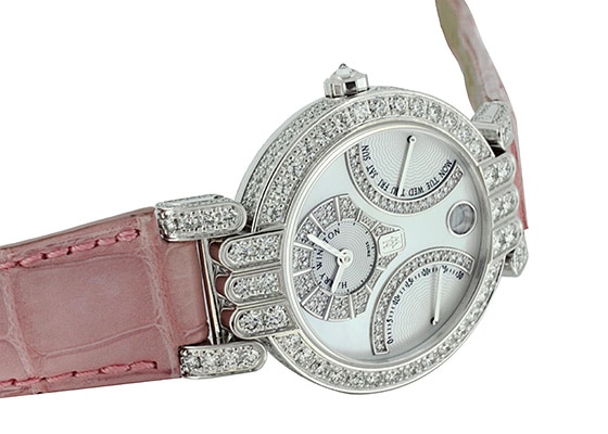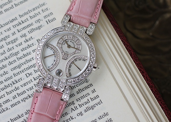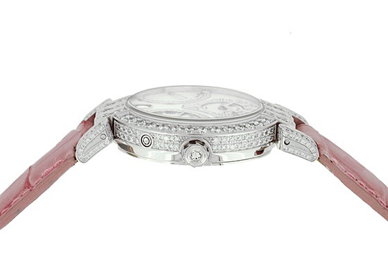 角度によって異なる輝きを放ち、ダイヤモンドと共に腕元を上品に演出。正に女性の為の一品となっています。