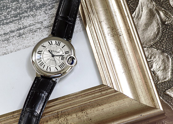 風船のような丸みの帯びたケースが優しく、ダイアルもカルティエらしく知的でエレガントな印象。