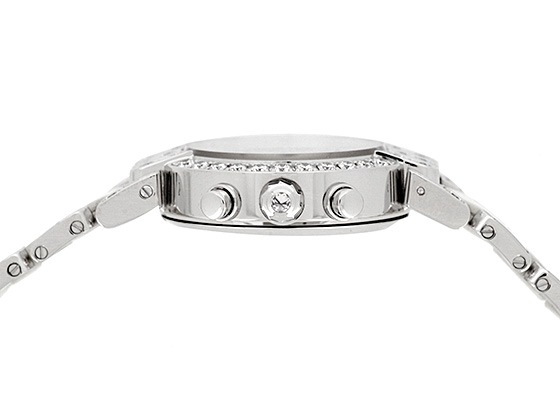 角度によって異なる輝きを放ち、ダイヤモンドと共に腕元を上品に演出。正に女性の為の一品となっています。