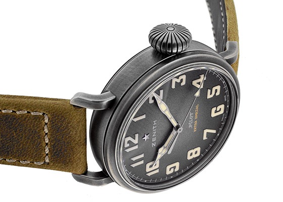 パイロットモデルらしくグローブをしたまま回せるタマネギ型リューズに、認視性のよい文字盤。グレイン加工されたスレートグレー文字盤と裏面にラバーのついた付カーキのオイリーヌバックカーフストラップ、エイジング加工を施したステンレスケースがスタイリッシュなビンテージ感を醸し出しています。