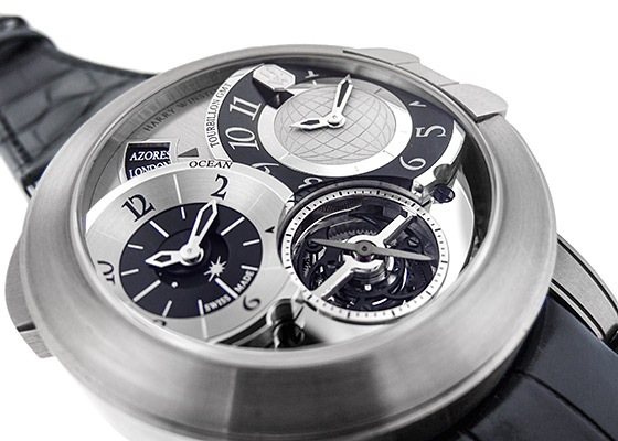 2008年発表の「プロジェクトZ5」をモディファイ、トゥールビヨンとデュアル・タイムゾーンを搭載した、世界を舞台に活躍するエグゼクティブに向けて作られた1本。
