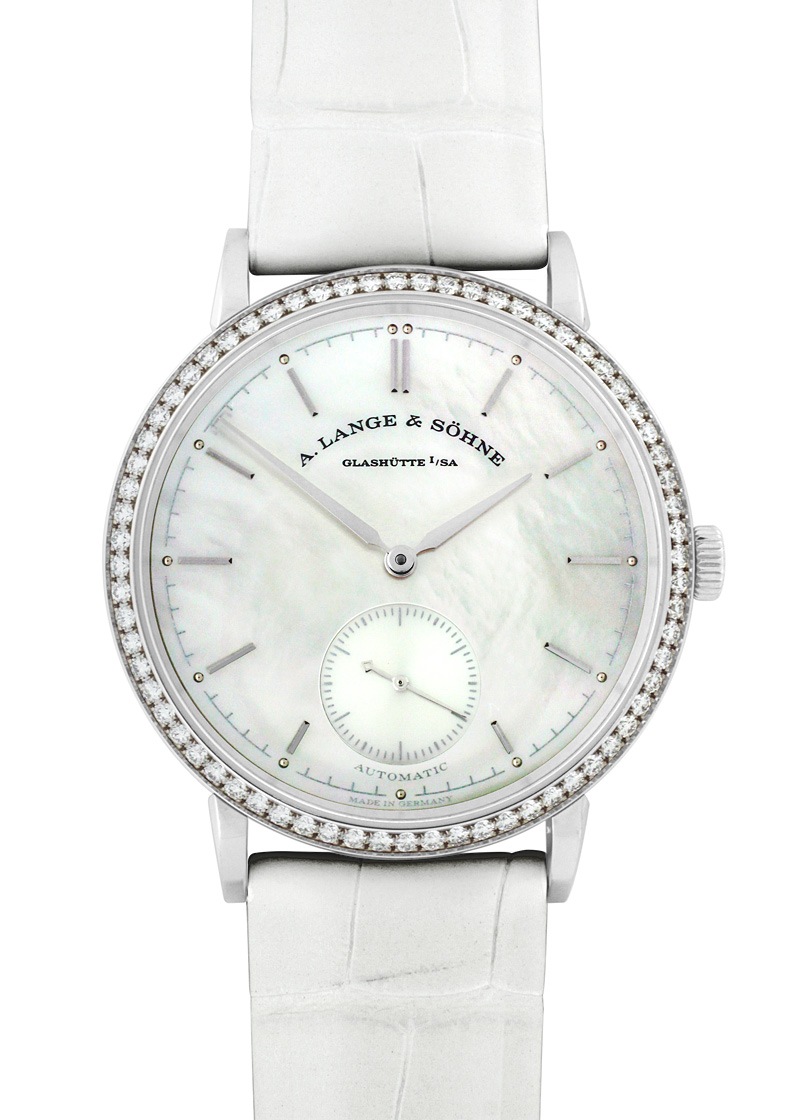 A.ランゲ&ゾーネ - レディース サクソニア ベゼルダイヤ | A.LANGE&SOHNE | 840.029(LS3803XS) | WG 白シェル文字盤 自動巻き レザー | 中古 |