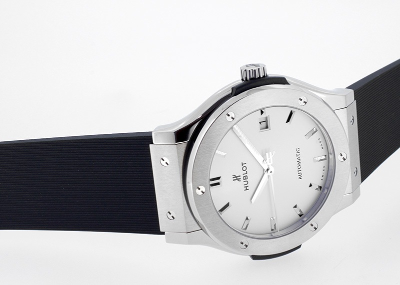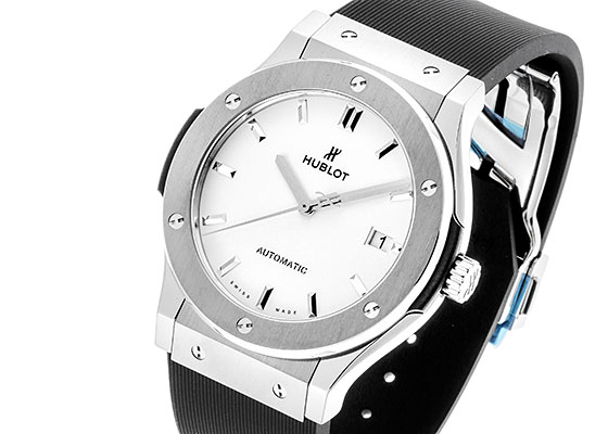 ウブロ - クラシックフュージョン ブラックシャイニー | HUBLOT | 542.NX.1270.LR | TI 黒文字盤 自動巻き ラバー | 中古