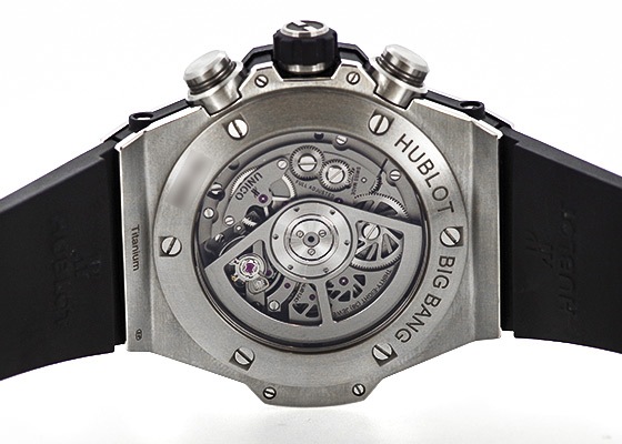 ウブロの「ビックバン ウニコ チタニウム」の中古品が入荷いたしました。 ウブロの誇る自社製フライバッククロノグラフムーブメント「ウニコ」を搭載したモデルでシースルー文字盤から眺めることが出来ます。 クロノグラフにはフライバック機能が付いており、作動時に4時位置のリセットボタンを押すだけで、ゼロからリスタートをします。 チタンケースのスポーティー且つ上品なモデルです。 こちらの商品は2018年3月に正規店で販売されたお品で、箱と保証書が付属しております。 外装の傷取り(研磨)をしており、目立つ傷等はございません。 是非この機会にご検討ください。 さらに詳しい内容を確認されたい方は、お気軽にお問い合せ下さい。 *参考定価:2,761,000円(税込)