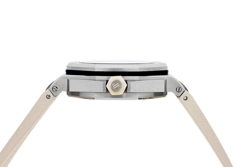 SIHH 2018年発表の新作「オフショアダイバー ファンキーカラー ベージュ」が入荷いたしました。 ロイヤルオークオフショアの防水性能をさらに高めた正真正銘のダイバーズウォッチ 「ロイヤルオーク オフショア ダイバー」。 「メガ・タペストリー」と呼ばれる独特の模様の文字盤には、視認性の良い日付表示窓が備えられています。 300Mの防水性能を持ち、回転インナーベゼルによって潜水時間の測定を行うことが可能です。 2017年から続く"ファンキーカラーコレクション"の新作ベージュカラー。文字盤やインナーベゼルだけでなく リューズやストラップも同色で統一されたカラーリングはどんなシチュエーションにもご愛用いただけます。 Cal.3120搭載 60時間パワーリザーブ。22Kゴールド製のローター仕様。 こちらはブティック限定モデルです。 ※生産終了モデル ※参考当時定価:2,310,000円
