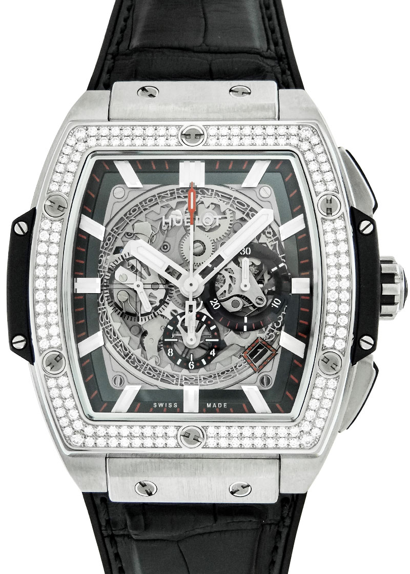 ウブロ - スピリット オブ ビッグバン チタニウム ダイヤモンド | HUBLOT | 601.NX.0173.LR.1104 | TI スケルトン文字盤 自動巻き ラバーアリゲーター | 中古 |