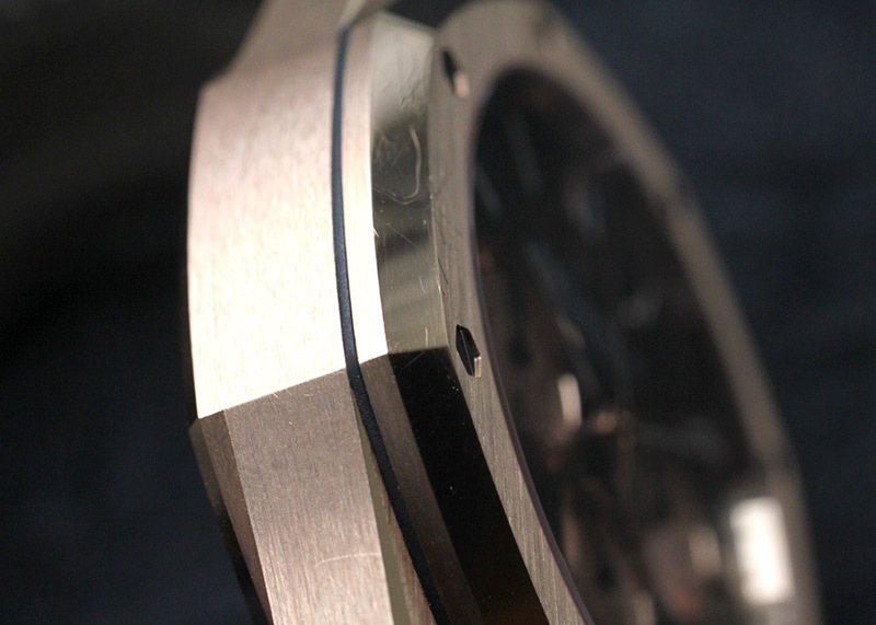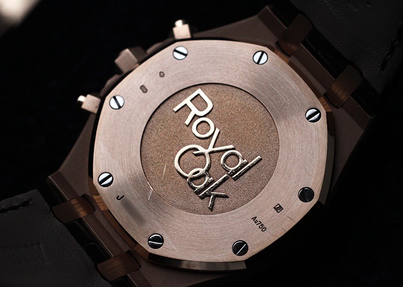 特徴的な模様の文字盤はロイヤルオークのオートマティックモデル共通の「グランド タペストリー」と呼ばれる特殊な装飾です。