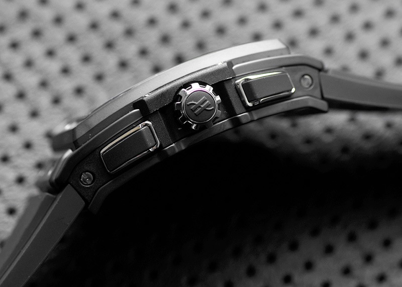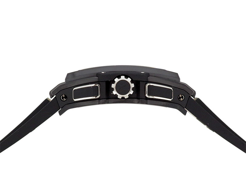 どちらも軽量な素材ですので、迫力ある見た目に反してとても軽量かつ、引き締まった印象の腕時計です。