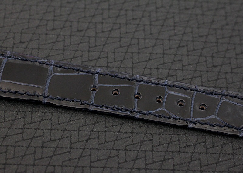ブルーとシルバーのコントラストが美しい文字盤で、10時位置のプッシュボタンで世界24都市の時間を設定することが可能です。