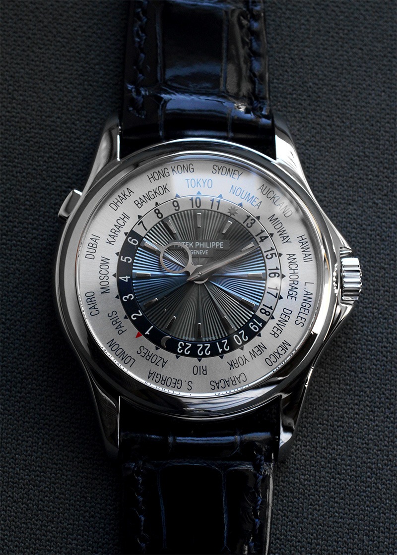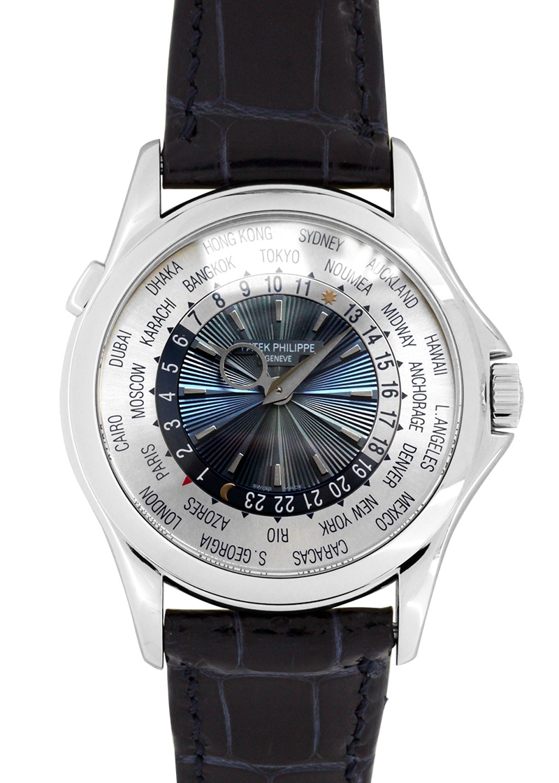 パテックフィリップ - ワールドタイム | PATEK PHILIPPE | 5130P-001 | PT シルバー/ブルー文字盤 自動巻き レザー | 中古 |