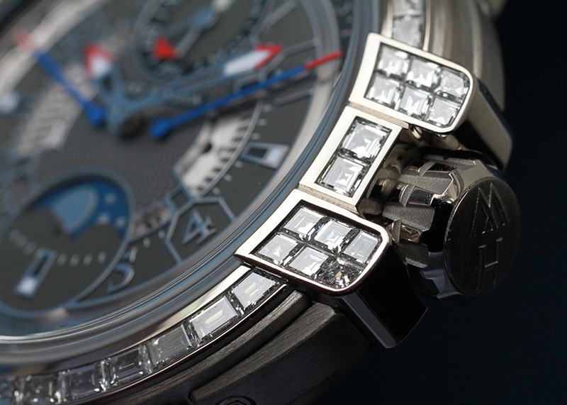 更にこちらのモデルはベゼル、ラグ、バックルに91石/総4.41ctのバゲットカットダイヤモンドをセッティングした世界20本限定です。