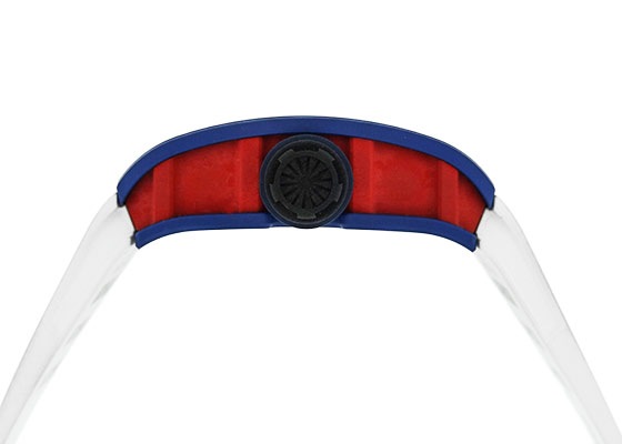 ケースはRM011と同じ大型ケースが採用されていますが、RM011に比べて3mmほど薄型となっており、より快適な着用感を実現しています。