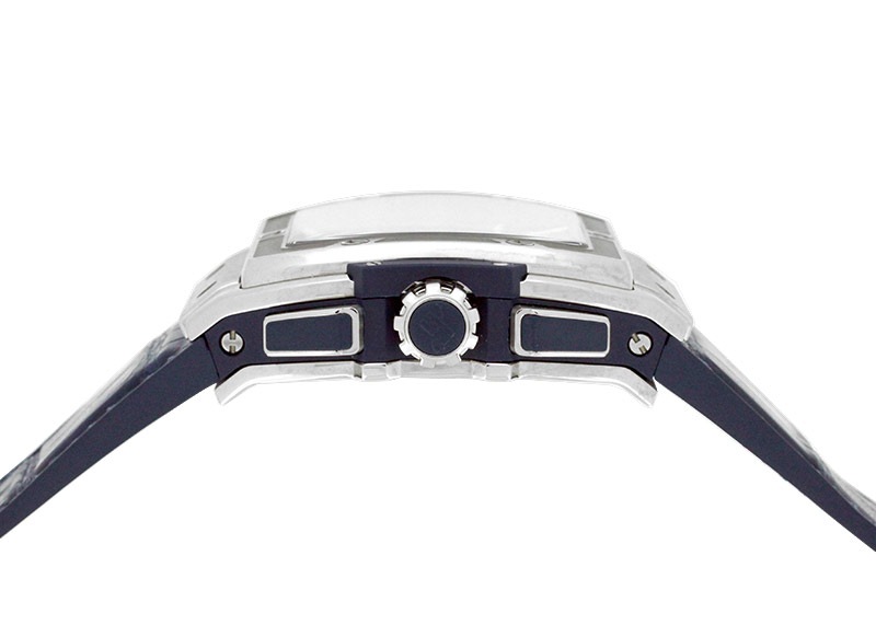 どちらも軽量な素材ですので、迫力ある見た目に反してとても軽量かつ、随所にブルーのアクセントカラーをあしらい、引き締まった印象の腕時計です。