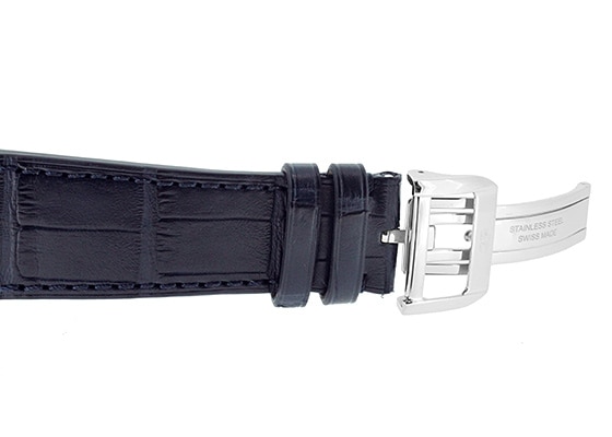 機能面では12時位置にラージデイト、6時位置にムーンフェイズを搭載、パワーリザーブは約46時です。