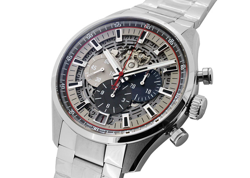 ムーブメントに軽量かつ高剛性なチタンを可能な限り使用し、通常のムーブメントよりも軽量化された「エルプリメロ400」を搭載。
