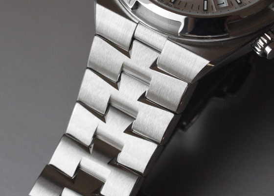 積算計の配置変更を行い、文字盤内のデイト表示が4時位置に移動したことにより視認性が高まりました。