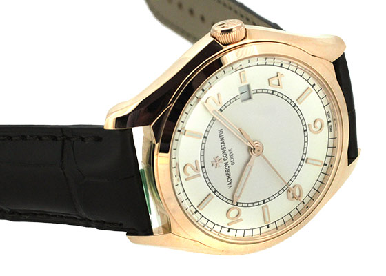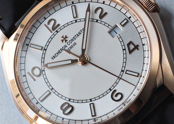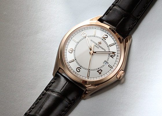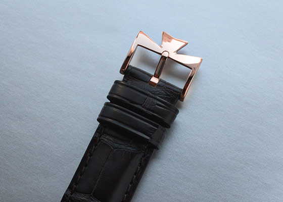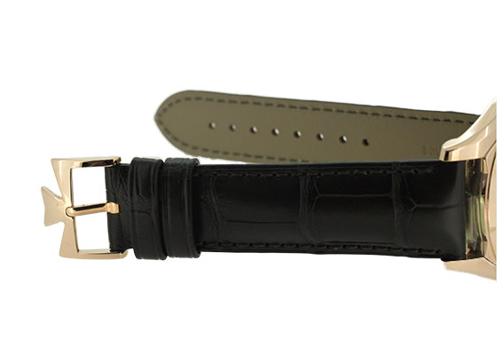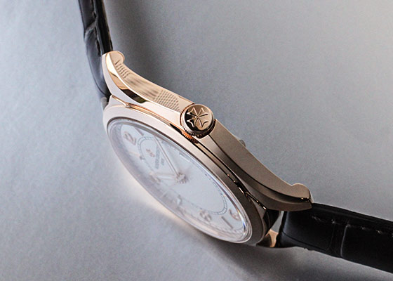 ラウンドケースに、ヴァシュロンのシンボルマークでもあるマルタ十字を模したラグが特徴。
