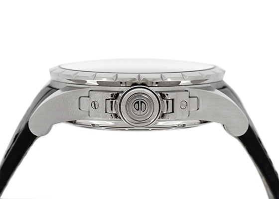 ジュネーブシール取得、パワーリザーブ60時間、計器としての指標をクリアしつつ、個性が時を凌駕したインパクトは唯一無二の存在です。軽やかに動くキャリバーの動きをご堪能ください。