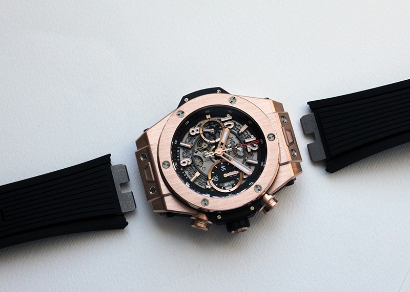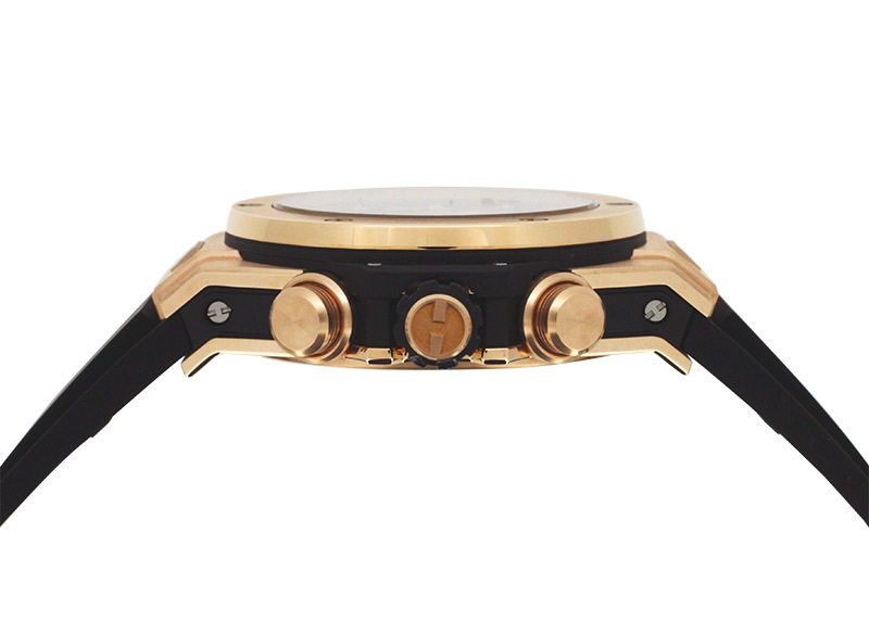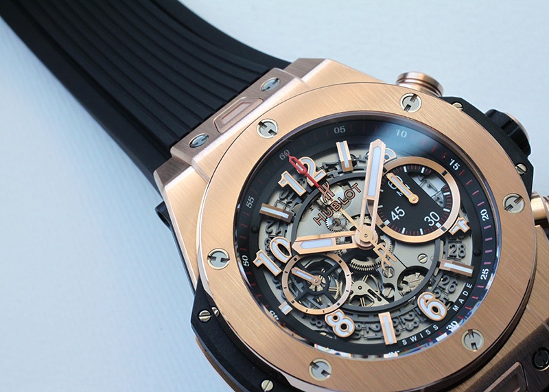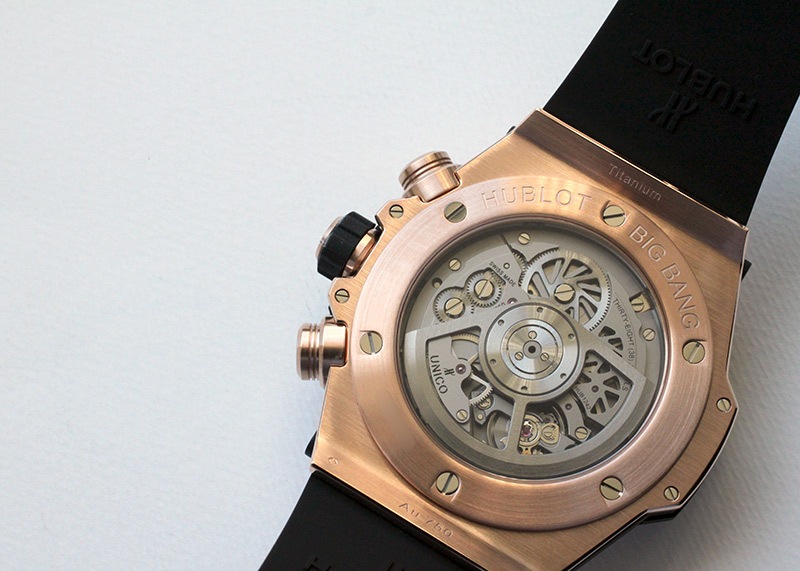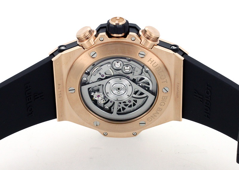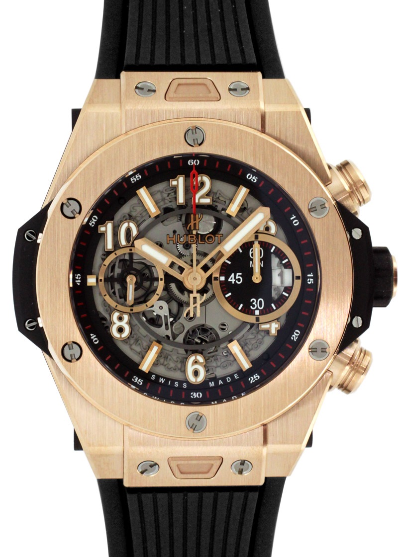 ウブロ「ビッグバン ウニコ キングゴールド」 ラグジュアリー感たっぷりのキングゴールドケースに、遊びココロあふれるハーフスケルトンの文字盤。 ウブロらしさを十二分に体感いただける腕時計です。 また、ムーブメントには4年の歳月をかけて開発した自社製のウニコを搭載しています。 さらに詳しい内容を確認されたい方はお気軽にお問い合せ下さい。 *参考定価:5,962,000円(税込)