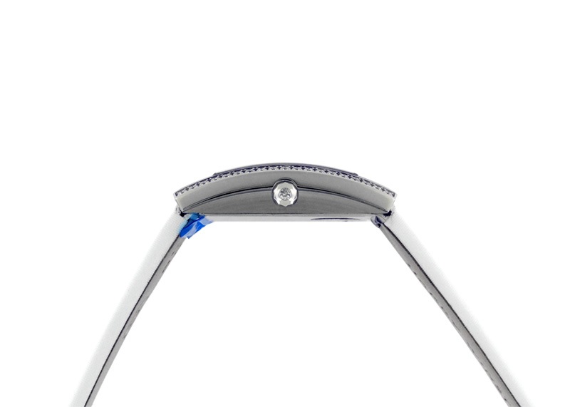 1999年に誕生したアヴェニューシリーズはハリーウィンストンのブティックに正面入り口のファサードモチーフに1930年代のニューヨークにおけるアールデコの雰囲気をまとったモデル。 このレクタンギュラーの美しいデザインは、ハリーウィンストンを代表するタイムピースです。 18Kホワイトゴールドのケースに、見る角度によって輝きを変えるホワイトシェルの文字盤が柔らかな印象を与えます。 ベゼルにはブリリアントカットのダイヤを2列にセッティング。 更にインデックスの3・9時位置にはブルーサファイヤを配置した、可愛らしくも上品なモデルです。 最高級の素材のみを使用し、その上品な美しさから世の女性を魅了し続けるハリーウィンストン。 小ぶりながらも美しいタイムピースは腕元を華やげてくれることでしょう。